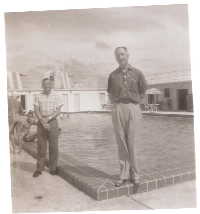 My grandfather had become friends with the owner of the 'Sea Spray' motel when he was in WWII. Therefore, the family always stayed there on their annual summer vacation. Here's my dad in front of the sign.....